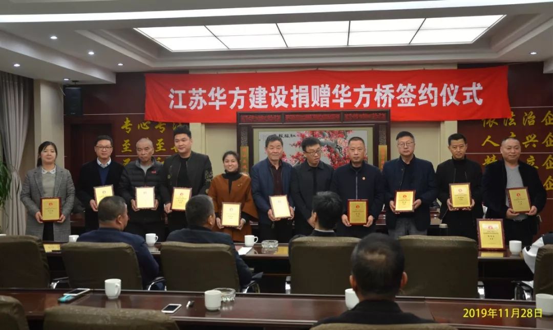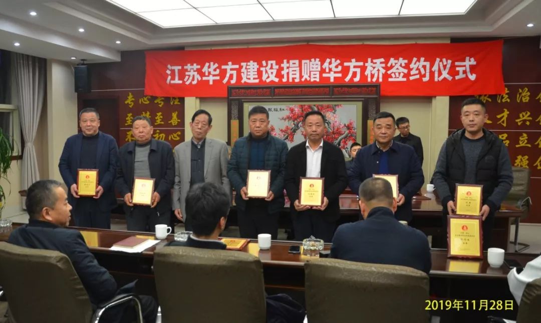 11月28日,東北塘街道與江蘇華方建設有限公司共同簽訂《華方橋捐贈協議書》,錫山區人大常委會主任蔣群,區委副書記、區委統戰部部長言國強,區政協副主席、工商聯主席史錫聯,區委統戰部副部長、工商聯黨組書記丁維偉,東北塘街道黨工委、辦事處主要領導、相關領導,老船長基金會全體會員參加此次活動。