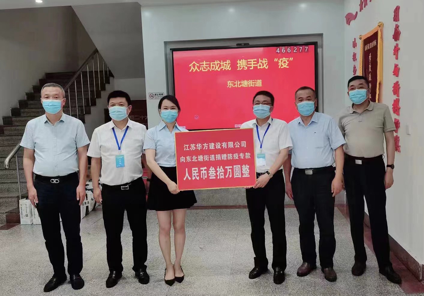 7月9日,江蘇華方建設有限公司董事長、黨支部書記李燕嵐女士代表公司向東北塘街道捐贈防疫專款30萬元,用于支持地方政府開展疫情防控工作。這是華方建設繼年初捐贈防疫物資以來,再次用實際行動踐行使命擔當,履行社會責任,譜寫了又一曲“政企攜手、共抗疫情”的戰“疫”之歌。